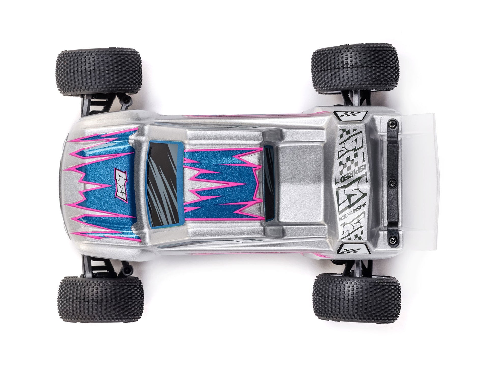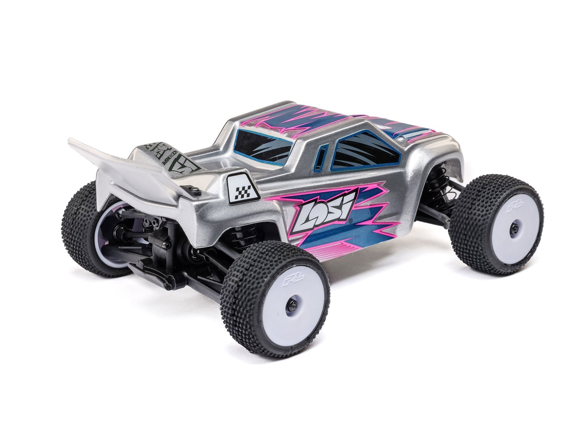 The included Pro-Line Racing body, wheels and tyres are exact same design found on racetracks around the world - another example of what makes the Losi Micro-T one of the best micro RC stadium trucks available!